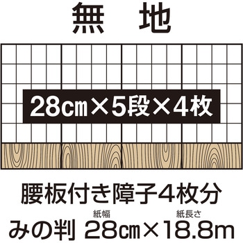 美しく貼れて、はがしやすいレーヨン入り障子紙です。無地タイプ。腰板付き障子4枚分。みの判。
