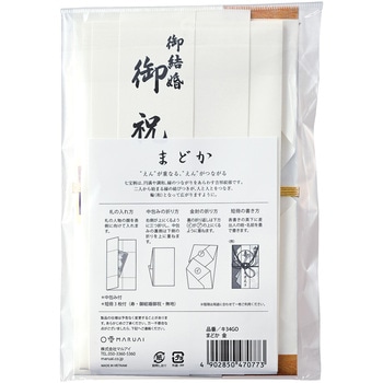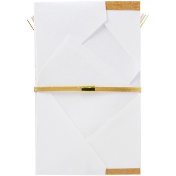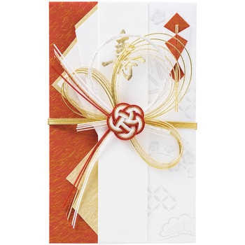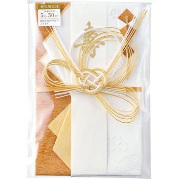 七宝柄と松竹梅の立体的なパール箔押しが上品に輝く中判サイズの金封です。七宝柄は「円満」や「調和」、「縁のつながり」をあらわす吉祥文様で、二人から始まる縁の結びつきが人と人とをつなぎ、輪(和)となって広がりますようにという願いが込められています。金額の目安:5万円~50万円