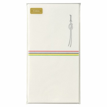 本体原紙の原料にコットンを配合した書き心地にこだわった奉書紙シリーズ(伊予和紙)。五色の水引が印刷されたお祝用の万円袋(封筒タイプ)です。日常のちょっとしたお祝い、お礼、心付けなど少額を包む際にお使いいただけます。封緘が簡単なテープのり付。