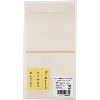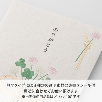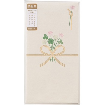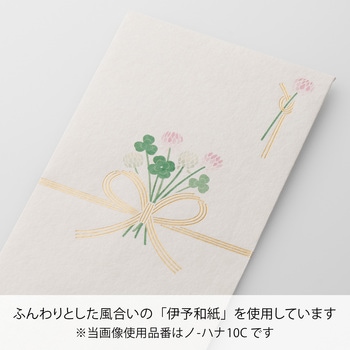 花を贈るように気持ちを添えて。熨斗と水引を箔押しで表現した、気軽にきちんと使える万円袋です。ふんわりとした風合いの「伊予和紙」を使用しています。描かれているクローバー(シロツメクサ)の花言葉は「幸運」「約束」。