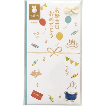大切なお祝いをミッフィーと一緒に。変わらない人気のミッフィーお祝いシリーズに「お誕生日祝」の多当が新たに加わりました。パーティーシーンの楽しい絵柄と箔押しの輝きがお誕生日をにぎやかに彩ります。のし部分にはサテンリボンとパールの飾りつき。