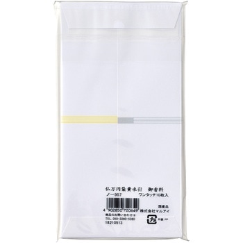 仏式通夜・葬儀の金包みとして最適な万円袋(封筒タイプ)です。お線香代のかわりとしてもご利用いただけます。主に中京地域で使われています。「御香料」の文字が墨印刷されています。仏式では49日を境に霊が仏になるとされており、一般的に49日から「御佛前」を使用します。裏面には封緘が簡単なテープのり付。
