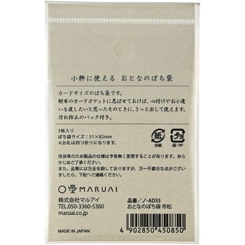小粋に使えるおとなのぽち袋です。日本のポピュラーな古典柄をモチーフに、華やかな箔で絵柄を施した粋なデザイン。財布のカードポケットに忍ばせて備えておけば、心付けやお小遣いを渡したいと思ったそのときに、さっと出して使えます。お札を四つ折にして入れることができます。汚れ防止のパック付き。