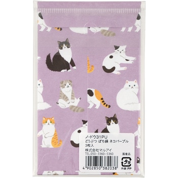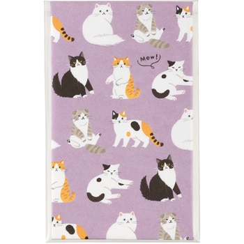 可愛らしい動物たちが、いろんな表情をみせてくれるどうぶつぽち袋。お金を入れたり、手紙を入れたり、お菓子をいれたりと気軽に使える商品です。人気のネコたちをモチーフにしたネコパープル。ペルシャ、メインクーン、エキゾチックショートヘア、スコティッシュ、三毛猫、白黒ぶちの6種類のネコたちの可愛いしぐさがキュートなデザインです。