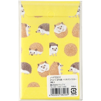 可愛らしい動物たちが、いろんな表情をみせてくれるどうぶつぽち袋。お金を入れたり、手紙を入れたり、お菓子をいれたりと気軽に使える商品です。ハリネズミをモチーフにしたハリネズミイエロー。ハリネズミの可愛いしぐさがキュートなデザインです。