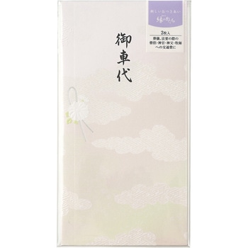淡い緑の霞模様が上品な、葬儀、法要の際の僧侶・神官・神父・牧師への交通費ととして最適な万円袋(封筒タイプ)です。宗教を問わずご利用いただけます。「御車代」の文字が墨色で印刷されています。