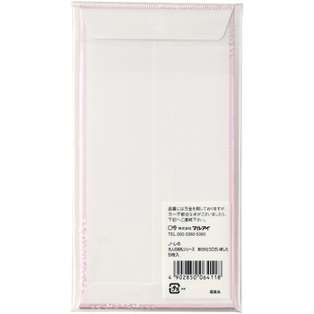 日常のちょっとしたお礼、お返しなど感謝の気持ちを表したい時に最適な万円袋(封筒タイプ)です。レースのモチーフにさりげない箔押しが上品なデザインで、優しい色合いに生地風の地模様が優しい雰囲気を演出しています。「ありがとうございました」の文字が印刷されています。