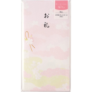 淡いピンクの霞模様が上品な、お世話になった方へのお礼の金包みとして最適な万円袋(封筒タイプ)です。「お礼」の文字が墨色で印刷されています。