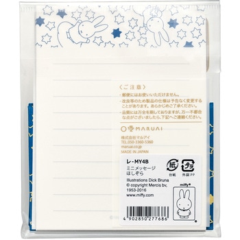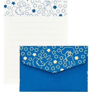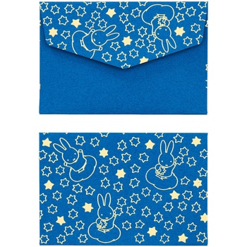 ミッフィーらしいカラーラインナップのちいさなレターセット。ビビッドな色合いの封筒にミッフィー柄の箔押しがシンプルで大人かわいいデザインです。便箋と封筒の柄はミッフィーと星をモチーフにしています。