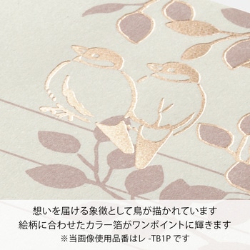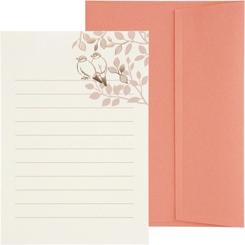 「好きな時間にひらいて 想いを綴る 物語のあるレターシリーズ」本を読む時間「夕」をイメージしたレターセットです。便箋にこぼれる光が行き交う想いを温かく包み込みます。便箋には思いを届ける象徴として鳥(文鳥)が描かれています。絵柄に合わせたピンクゴールド箔がワンポイントに輝きます。書籍用の紙を便箋に使用しています。「さらっとしためくりやすい紙質」「目に優しい淡いクリーム色」「文字が裏面に透けにくい」特徴があります。封筒は便箋を折らずに入れられます。Lサイズの写真が入る定形郵便サイズです。封筒のフタにはデボス加工のシンプルな装飾が施されています。