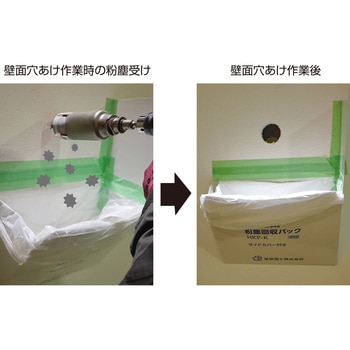 エアコン設置の壁貫通施工時の粉塵の飛散を抑えます。室内側の壁にエアコン配管の穴あけ工事の際の必須アイテムです。内壁素材のボードなどの粉塵が飛び散らないようゴミ袋に受ける回収パック。本製品を貫通予定箇所のすぐ下に養生テープで貼るだけ!市販のゴミ袋(45L)をセットして埃を受けるだけ!紙製だから軽くて設置も持ち運びもカンタン!