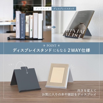 向きを変えることで、ディスプレイスタンドとしても使用でき、お気に入りの本を飾っておける2WAY仕様です。