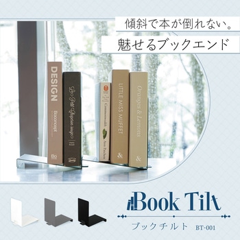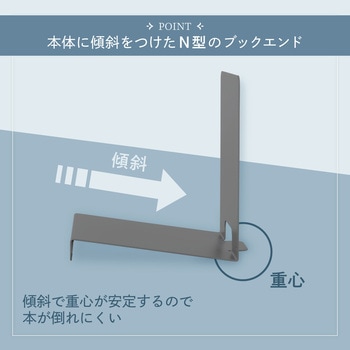 ブックチルトは、本体に傾斜をもたせたN型のブックエンドです。傾斜により本を立て掛けた際に重心が安定し、倒れにくい設計になっています。