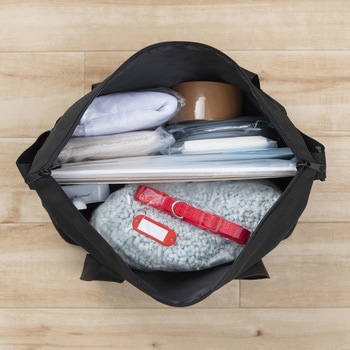 緊急時の同行避難を想定した、ペット用防災セット猫用15点セットです。ショルダーバッグは斜め掛け・肩掛け・手提げが可能です。防災リュック・クレートと一緒に運べます。ゆとりあるバッグは水やフード等、嗜好性の高いものを入れられます。猫砂4Lの袋がそのまま入ります。水・フード・猫砂・その他常備薬等はご用意ください。