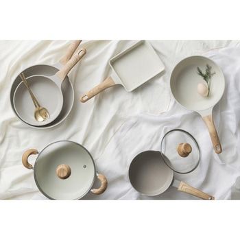 軽量で使いやすく扱いやすいフライパンです。軽く握りやすい形状のハンドルのため、ラクに調理ができ、洗う時の負担が少なく済みます。ふっ素樹脂コーティングを施し、汚れがこびりつきにくくなっています。ナチュラルカラーと木目調のハンドルは、キッチンに馴染みやすく可愛らしいデザインです。内側はマーブル模様です。有害物質(PFOA/PFOS)不使用の塗料を使用しているため、安心してお使いいただけます。
