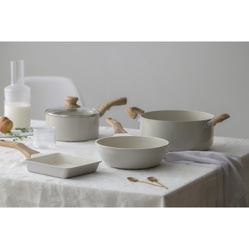 パールグレー×アイボリー対応IH・ガスコンロ・ラジエントヒーター・その他の電気ヒーター対応(※電子レンジ、オーブンでは使用できません。)内寸(cm)15×18満水容量(L)0.8深さ(cm)調理面:4内容量1個