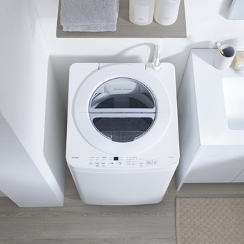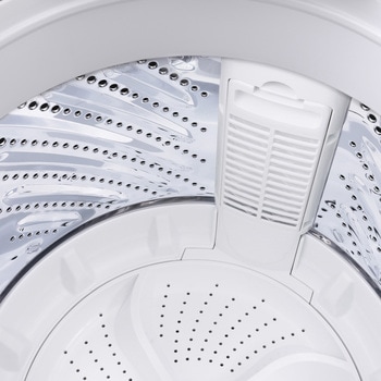 デザイン重視の縦型洗濯機で部屋の雰囲気がガラッと変わる。羽根が高いパルセーター使用。衣類が絡まりにくくなることで洗浄力アップ。前面にかけて傾斜をつけることで洗濯物が取り出しやすい。投入口が大きいサークル状で洗濯物の出し入れがしやすい。2日分の衣服(約900g)を約9分で洗濯可能。