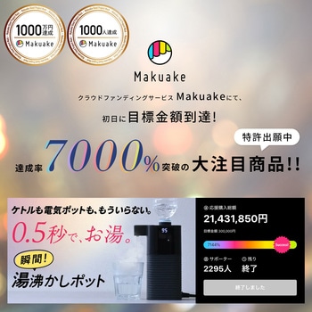 0.5秒で給湯できる瞬間湯沸かしポットどこでも置けるコンパクトサイズ温度調節ができてウォーターサーバーとして使える付属のアタッチメントでドリップコーヒーも淹れることが可能対応ペットボトル口径:28mm / 30mmタッチ操作温度設定範囲:常温/50度~95度(5度単位設定)