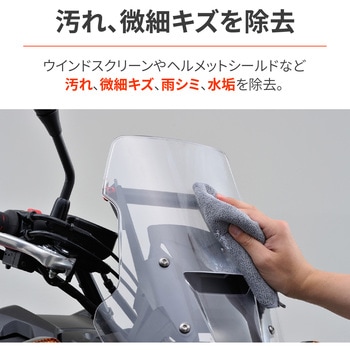 ウインドスクリーン・レンズ・ヘルメットシールド等の汚れ・微細キズを除去。
