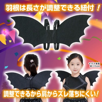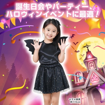 ハロウィンやイベントで大活躍!着るだけで可愛く決まるコウモリ衣装!本格的なデザインでコウモリになりきれるキッズ用コスプレ衣装です。羽、トップス、スカートの3点セットで、簡単にかわいく変身できます。光沢感のあるサテン生地で、写真映えする華やかな仕上がりです。誕生日会や発表会、ハロウィンなど、華やかなシーンで大活躍します。