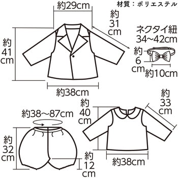 【トップス】着丈:400、肩幅:280、腕の長さ:330・ズボン ウエスト380~870、総丈:320、股下:120・ジャケット 肩幅:290、丈:約410、腕の長さ:310