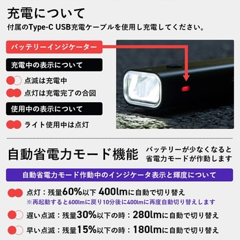 充電式LEDサイクルライト 1000lm USB充電 防水IPX5
