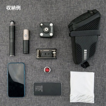 コンパクトサイズながら、想像以上の収納力を備えたサドルバッグ。取り付けは簡単で、工具や携帯品など「常に持っておきたい必需品」の収納に最適です。