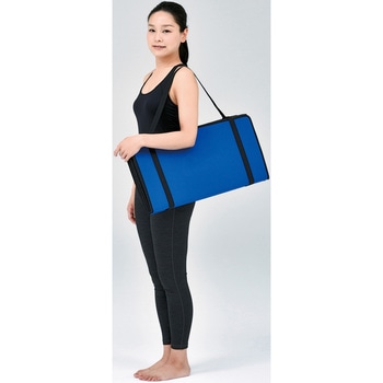 コンパクトに折りたたみ可能な軽量エクササイズマット。耐久性と肌触りの良いポリエステルを採用。携帯に便利なショルダーベルト付き