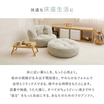 インド綿100%のやさしい風合いのフロアソファ『レトア』。空間を広くみせるロースタイルに、やわらかい雰囲気でくつろぎ感を演出します。円形ソファの丸みのある特徴的なフォルムは、自然と目を引くアクセントになり、シンプルなお部屋でも一気に洗練された印象に。