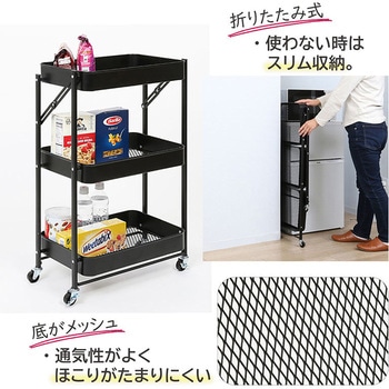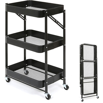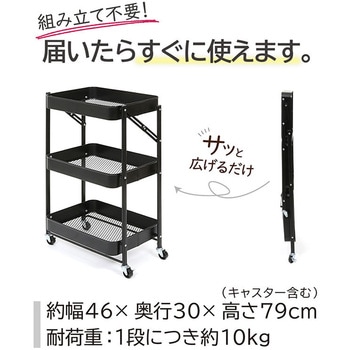 【組み立ていらず折りたたみワゴン】組み立て不要で使いたいときに広げてすぐに使える折りたたみワゴン。