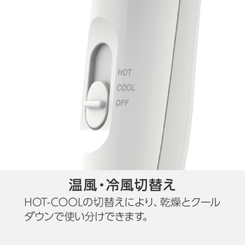 小さくてもパワフル風量1.3立米/分、温風・冷風切替え(HOT-COOL)