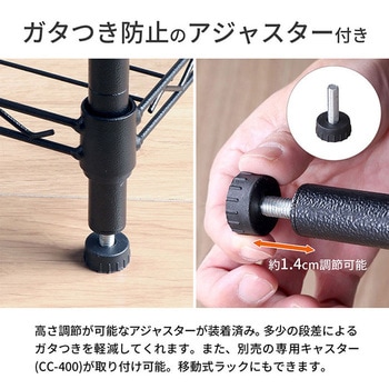 ポール直径19mmのスチールラックに取り付けて使用できる、オプションパーツのキャスターが別売りで販売しております。