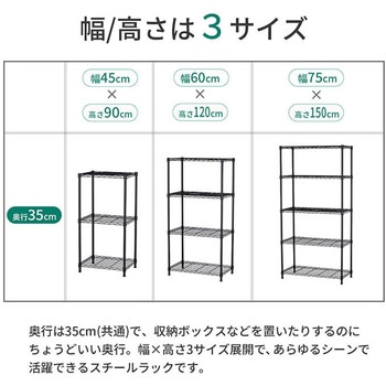 バスケットや収納ボックスなどを置いたりして使用するのにちょうどいい奥行35cm。