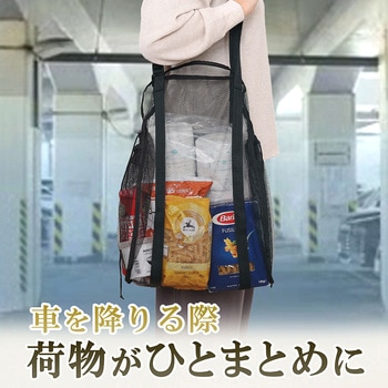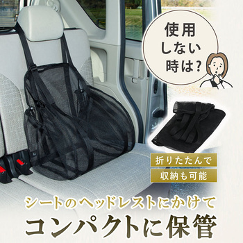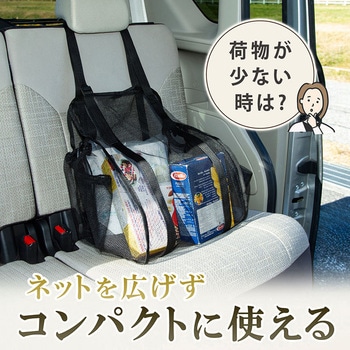 荷物の量が少ないときは、1か所のヘッドレストに掛けて、ネットを広げずスリムに使用できる。