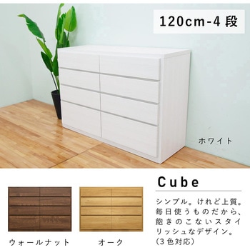キューブ 幅120 4段 チェスト 家具 収納 ホワイト/ウォールナット/オーク