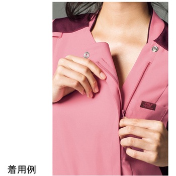男女ペアで着られる「背中・脇ニット」のアクティブスクラブ。通気性がよく伸縮性のある透けないブリースニットを背中と脇部分に採用腕の上げ下げなど大きな動きがしやすく肌にまとわりつかないさらっとした着心地です濃い色なので汗をかいても目立ちません。羽織るタイプはかぶるタイプに比べて着脱がしやすくメイクなどが付きにくいのも特徴です。アクセントカラーを効かせたスポーティな襟元はポロシャツ仕様にすることで汗を吸収しやすく着心地よく仕上げました。重みを分散する独自の設計の携帯電話収納ポケット右肩に携帯電話のストラップを結びつけられるループ付きなので首にストラップをかけずに携帯電話を持ち運びできます。アームホールに小さなショルダーバックを付けたような形状なので携帯電話などの重さが分散されます「公開特許公報」:特開 2014-132129。便利なループ付きの右腰の小分けポケットはサージカルテープやはさみなど小物類の収納に左腰にもポケット付き。