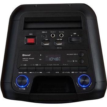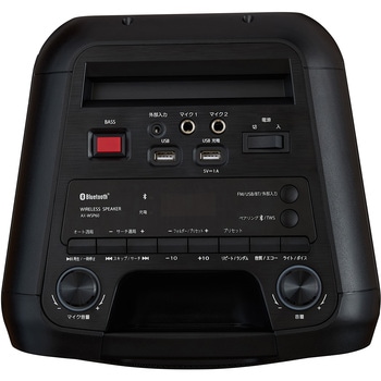 付属品電源コード、横置き用シリコンゴムクッション×4、取扱説明書(保証書付き)質量(kg)6.8電源AC100V50/60Hz(消費電力40W)最大出力(W)実用:30×2寸法(幅W×高さH×奥行D)(mm)259×608×260(突起部含む)機能TWS:本機を2台用意いただくことで、2台をワイヤレスでつなげてステレオ再生が可能。左右のスピーカーが連動し臨場感あふれるサウンドを楽しめます。バッテリー11.1V4h充電式リチウムイオンバッテリー(充電約3時間)メモリー【USB』】容量:32MB~32GB迄、再生形式:MP3(MPEG-1 Audio Layer3)、対応メモリー:USB1.1またはUSB2.0、再生可能メモリー:USB-IF 認定品(USB1.1、USB2.0)入力端子外部入力端子:Φ3.5mmステレオミニ、マイク入力:Φ6.3mmジャック×2スピーカーΦ16.5cmフルレンジスピーカー×2、Φ5cmツイーター×2受信周波数【ラジオ】FM:76.0~108.0MHz(0.1MHzステップ)USBポート音楽再生USBポートDC出力:5V200mA、充電ポートDC出力:5V1ABluetoothVer.5.4、対応プロファイル:A2DP、AVRCP、見通し距離:約10m内容量1台