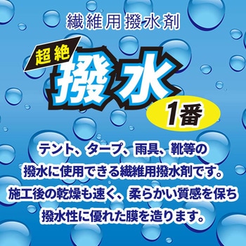 テント、タープ、傘、レインコート、靴等の化学繊維に使用できる繊維用撥水剤です。施工後の乾燥も速く、柔らかい質感を保ち撥水性に優れた膜を造ります。