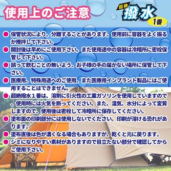 ※超絶撥水1番は、溶剤に引火性の工業ガソリンを使用していますので、使用時には火気を断ってください。また、湿気、水分によって変質しますので、使用後は密栓して冷暗所に保存してください。