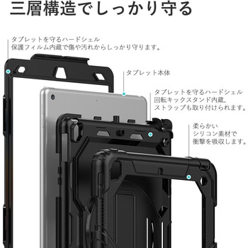 ・3層構造(シリコン+ハードPC)による高耐衝撃設計で、落下や衝撃からiPad本体をしっかり保護します。