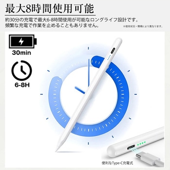 ・Type-C急速充電に対応しており、約30分の充電で最大8時間の連続使用が可能です。
