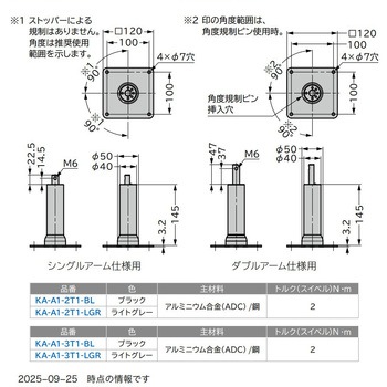 ダブルアーム仕様用です。増設アームKA-A1-AD2型と組み合わせてご使用ください。