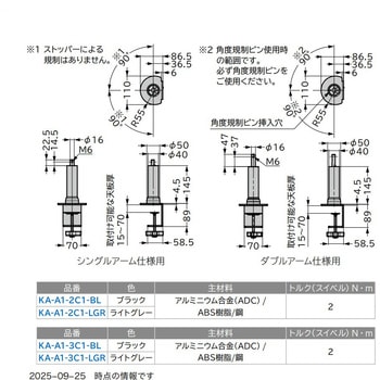 ダブルアーム仕様用です。増設アームKA-A1-AD2型と組み合わせてご使用ください。