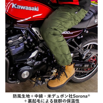 バイク用としての安全性・走行時の動きやすさはそのままに、防風生地に加え、中綿と裏起毛を重ねた三層構造。