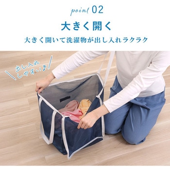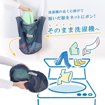 洗濯機にひっかけておくことで、洗濯物をぽいぽいためて、そのまま洗濯できる便利さ。