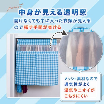 ホコリがついても洗濯機で洗えるので衛生的。衣類が見えるメッシュ窓付き。
