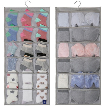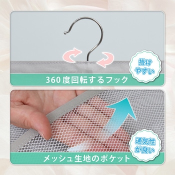ポケット部分はメッシュ生地で通気性が良く、スリムなのでクローゼットの隙間にも吊り下げられる。