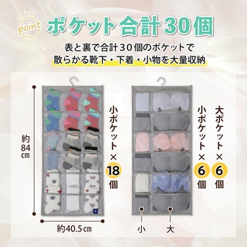 両面で合計30個のポケットがあるのでたくさん収納でき、小物類の整とんに活躍すること間違いなし。