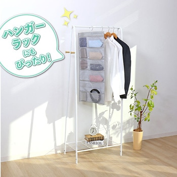 【便利な吊り下げ収納】クローゼットのハンガーパイプや、壁、ドアなどに吊り下げて使えるハンガー付きの収納ポケット。