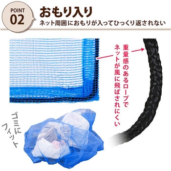 約1.5×1.5mの戸別収集用サイズ。ネット周囲におもりロープ入りで飛ばされにくい。